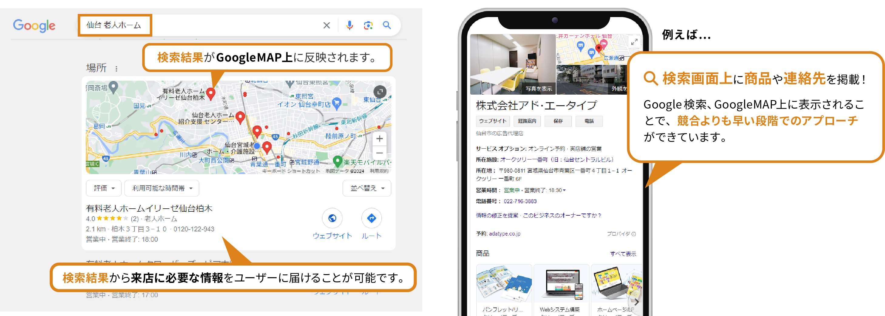 Google検索、GoogleMAP上でのお店の情報を発信する場所になります。